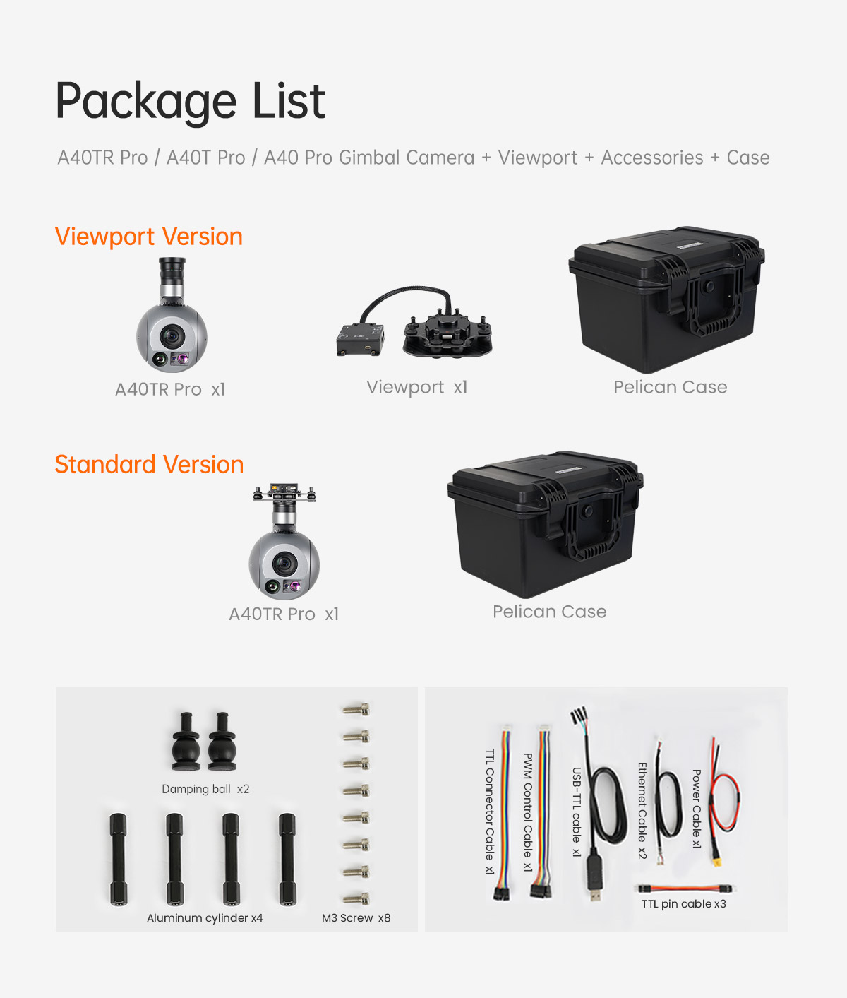 1pc gimbal camera device, screws, copper cylinders, damping balls, damping boards, 1pc USB to TTL cable / Hight quality plastic box with foam cushion |
