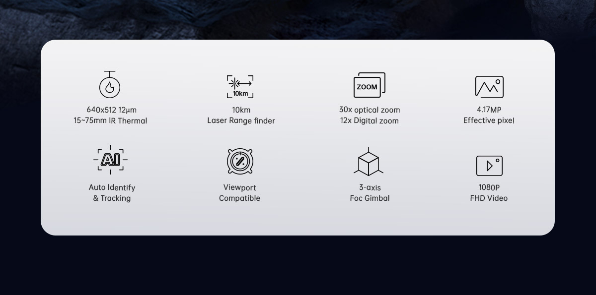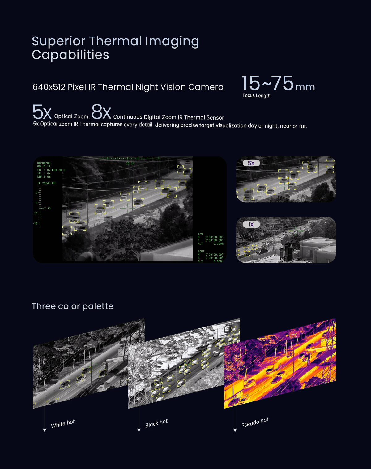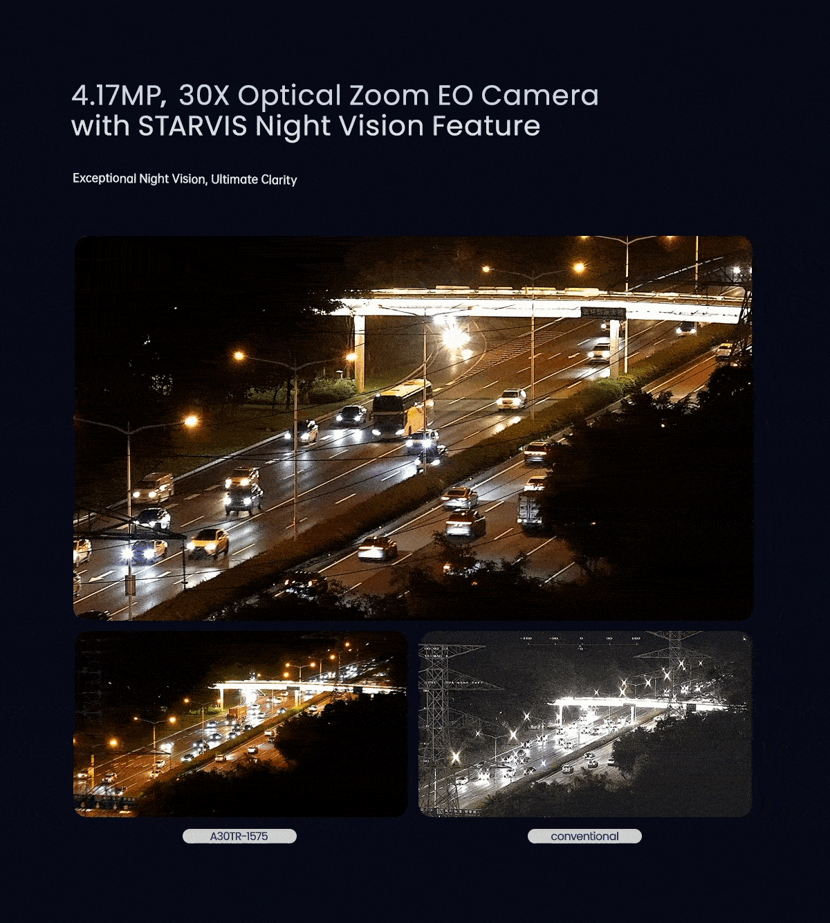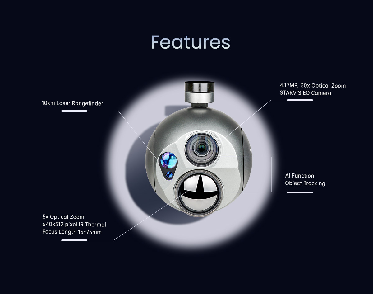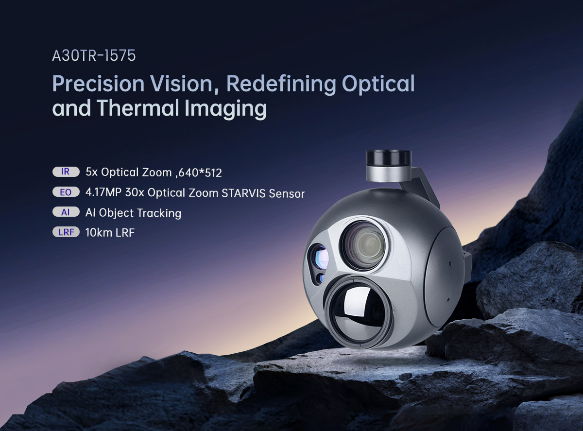 MA30TR-1575 Precision Vision Redefining Optical and Thermal Imaging Triple Sensors Al Object Tracking Gimbal Camera