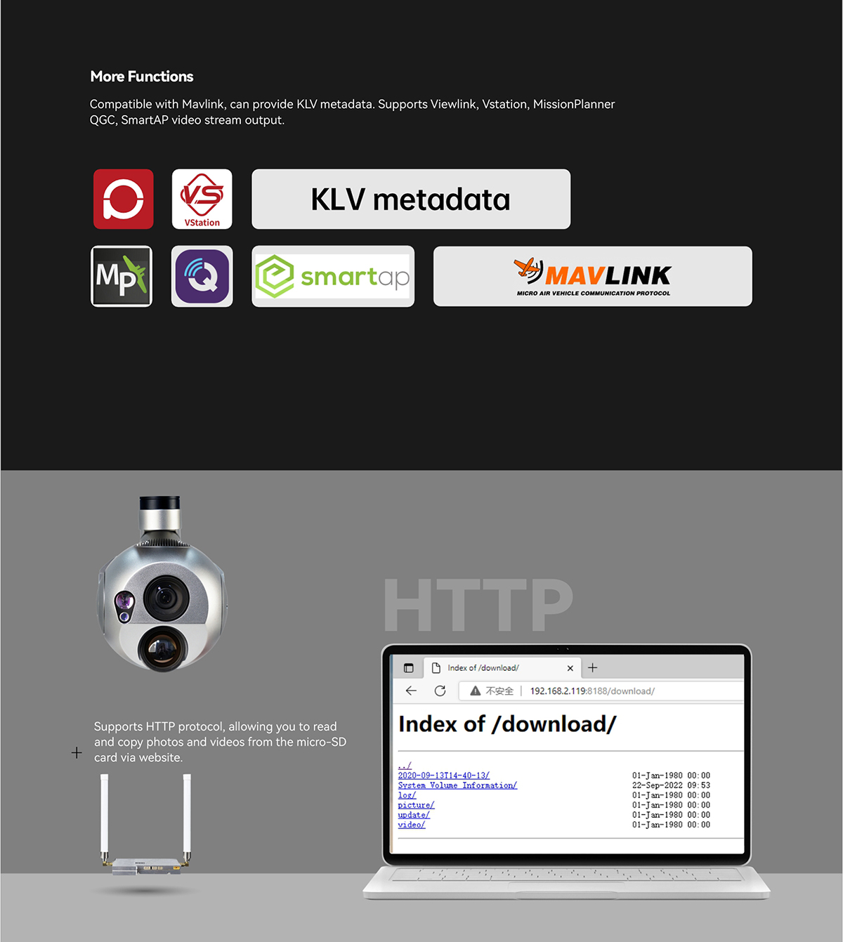| Video Output | micro HDMI (1080P 30/60fps) / IP Rtsp (720P/1080P 30fps) | |||
