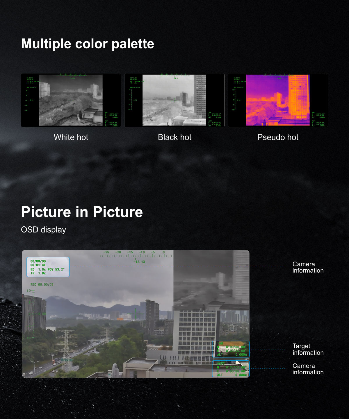 White hot, black hot, pseudo color |