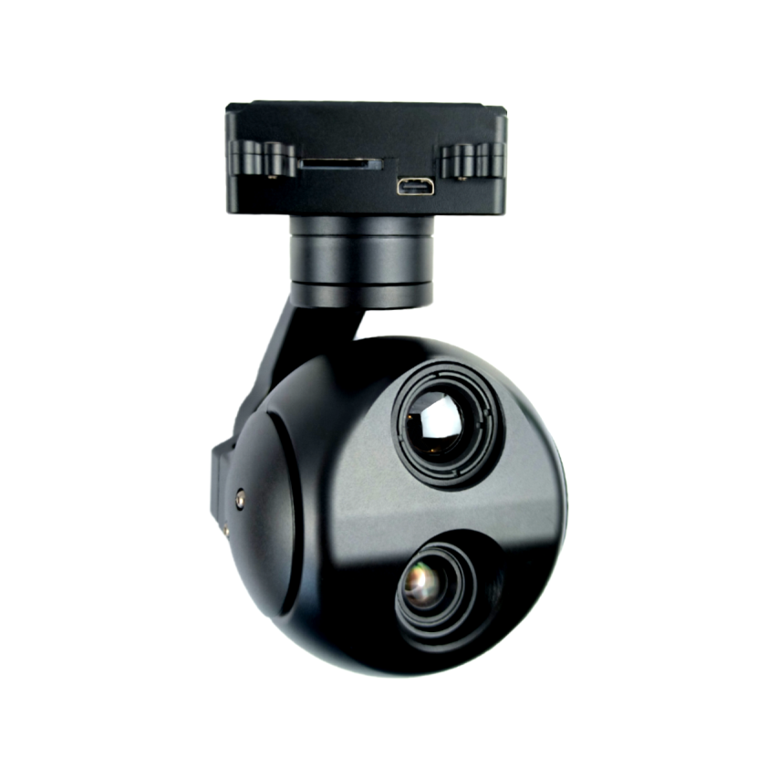 DHU290G613 is a fixed-focus dual-sensor integrated system that integrates 1080P fixed focus, 13mm 640×512 thermal imaging, and a high-precision professional three-axis stabilization gimbal camera. It uses network IP output, and the gimbal uses a high-precision encoder FOC control solution. It has the characteristics of high stability, small size, light weight, and low power consumption; the visible light camera uses a SENSOR with an effective 2 mega pixel. The gimbal and camera can be controlled by the serial port, S.BUS, and network, and supports local TF dual-channel video recording and photography.