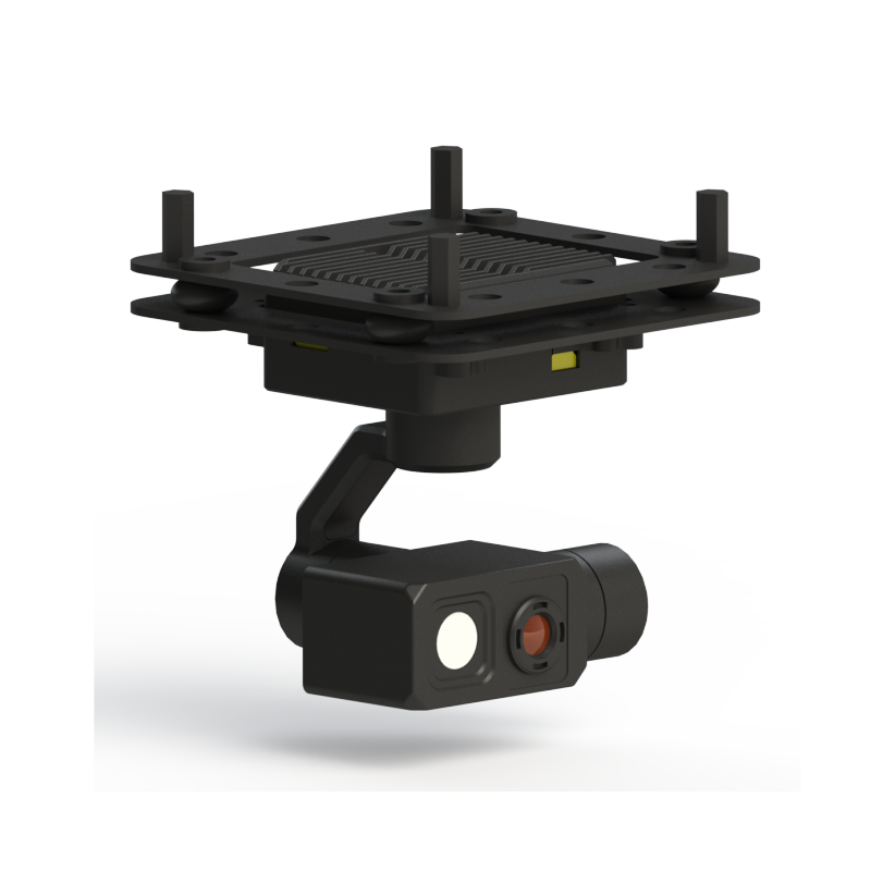DHU586G207 is a fixed focus dual optical system that integrates 48 million fixed focus, 7mm 256 × 192 thermal imaging, and high-precision professional three-axis stabilization pod. It adopts network IP output and high-precision encoder FOC control scheme for the gimbal, which has the characteristics of high stability, small size, light weight, and low power consumption; The visible light camera uses a SENSOR with an effective pixel count of 48 million. Serial port, S.BUS, and network can all control the camera and gimbal, supporting local TF dual channel recording and photography.