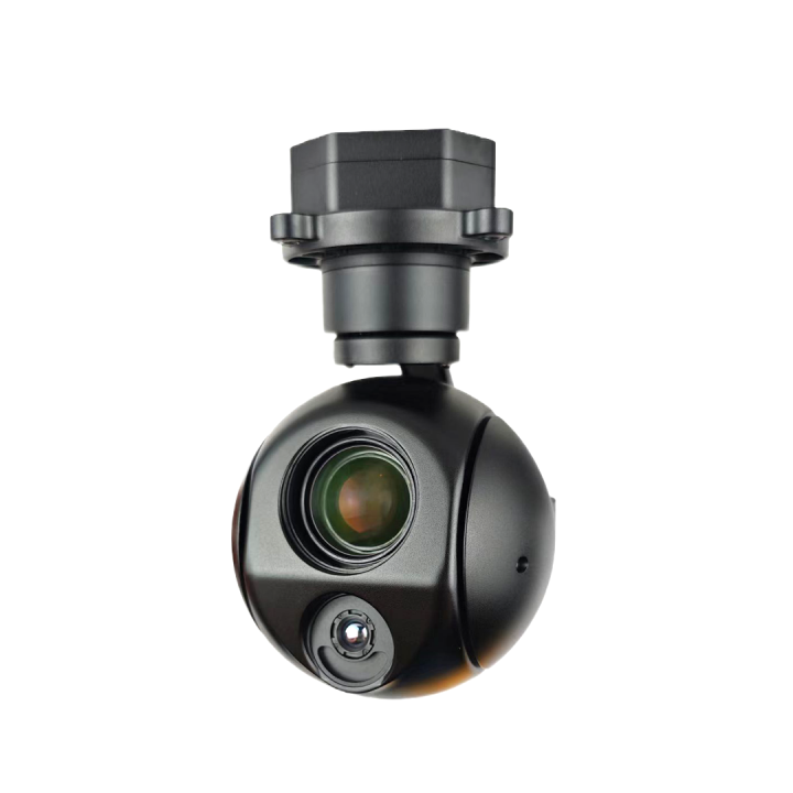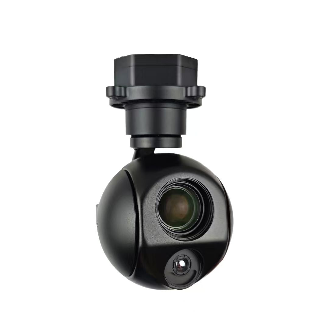 DIY10G207-E is a 90x hybrid zoom electronic stabilization camera gimbal that integrates a 7mm lens 256 × 192 vanadium oxide infrared thermal imager and high-precision three-axis stability. It supports IP and HDMI output, and has the characteristics of high stability, compact size, light weight, and low power consumption. The visible light camera uses a 200M pixel WDR sensor, supports serial port, S.BUS, and IP control, and uses TF card storage for backup. It also supports various PIP modes, pseudo color modes, and global temperature measurement.