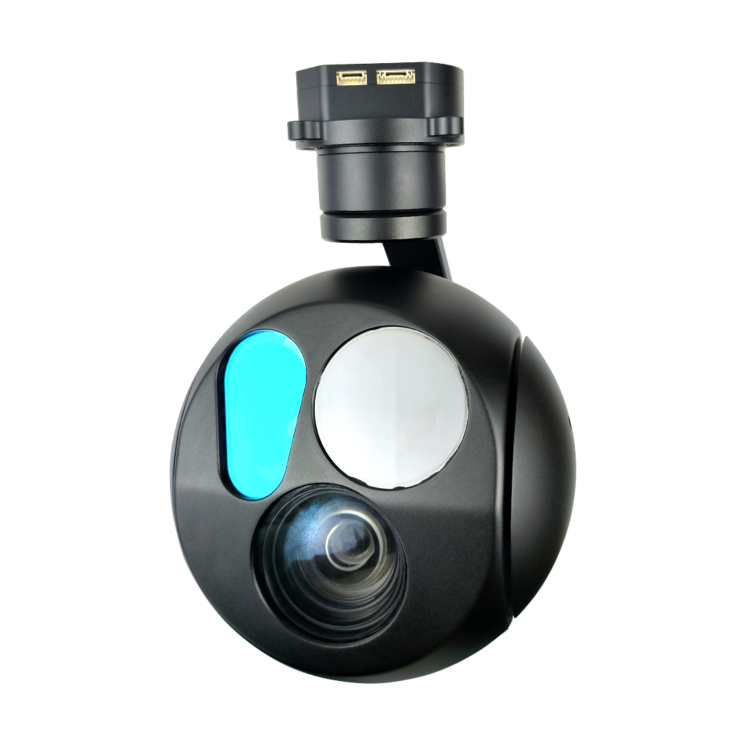 EHP20G12L30 is a high-precision professional three-axis stabilization pod with integrated 140x hybrid zoom, 1280×1024 thermal imager with 25mm focal length, and 3000m laser ranging. This pod adopts a compact design with high stability, high integration, and low power consumption. The visible light camera uses a wide dynamic sensor with an effective pixel of 8 mega; the thermal imaging uses a vanadium oxide 1280 resolution detector with a built-in baffle. 3000m high-precision ranging function. Provides software ground station, supports picture-in-picture display of dual-channel video, network, S.BUS and serial port can directly control the PTZ and camera, supports local TF storage and network file read and write operations, supports dual-channel synchronous recording, supports multiple picture-in-picture modes and pseudo-color switching.