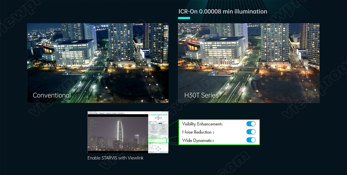 In the case of ICR-Off (Typical value) 0.009 lx (1/30 sec, 50%, High Sensitivity mode On) 0.09 lx (1/30 sec, 50%, High Sensitivity mode Off) 0.0012 lx (1/4 sec, 1/3 sec, 50%, High Sensitivity mode On) 0.012 lx (1/4 sec, 1/3 sec, 50%, High Sensitivity mode Off) In the case of ICR-On 0.00008 lx (1/30 sec, 50%, High Sensitivity mode On) 0.00063 lx (1/30 sec, 50%, High Sensitivity mode Off) 0.000005 lx (1/4 sec, 1/3 sec, 30%, High Sensitivity mode On) |