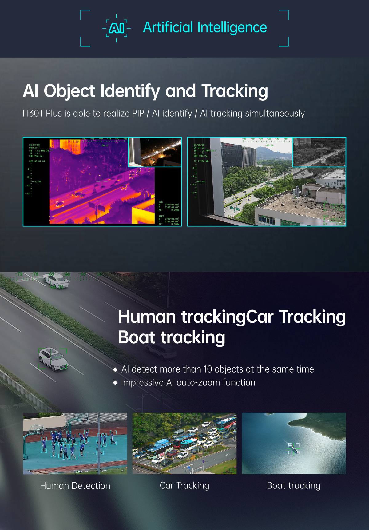 MH30T Plus Quad-Sensor 30x Starlight Night Vision Wide-Angle AI Camera