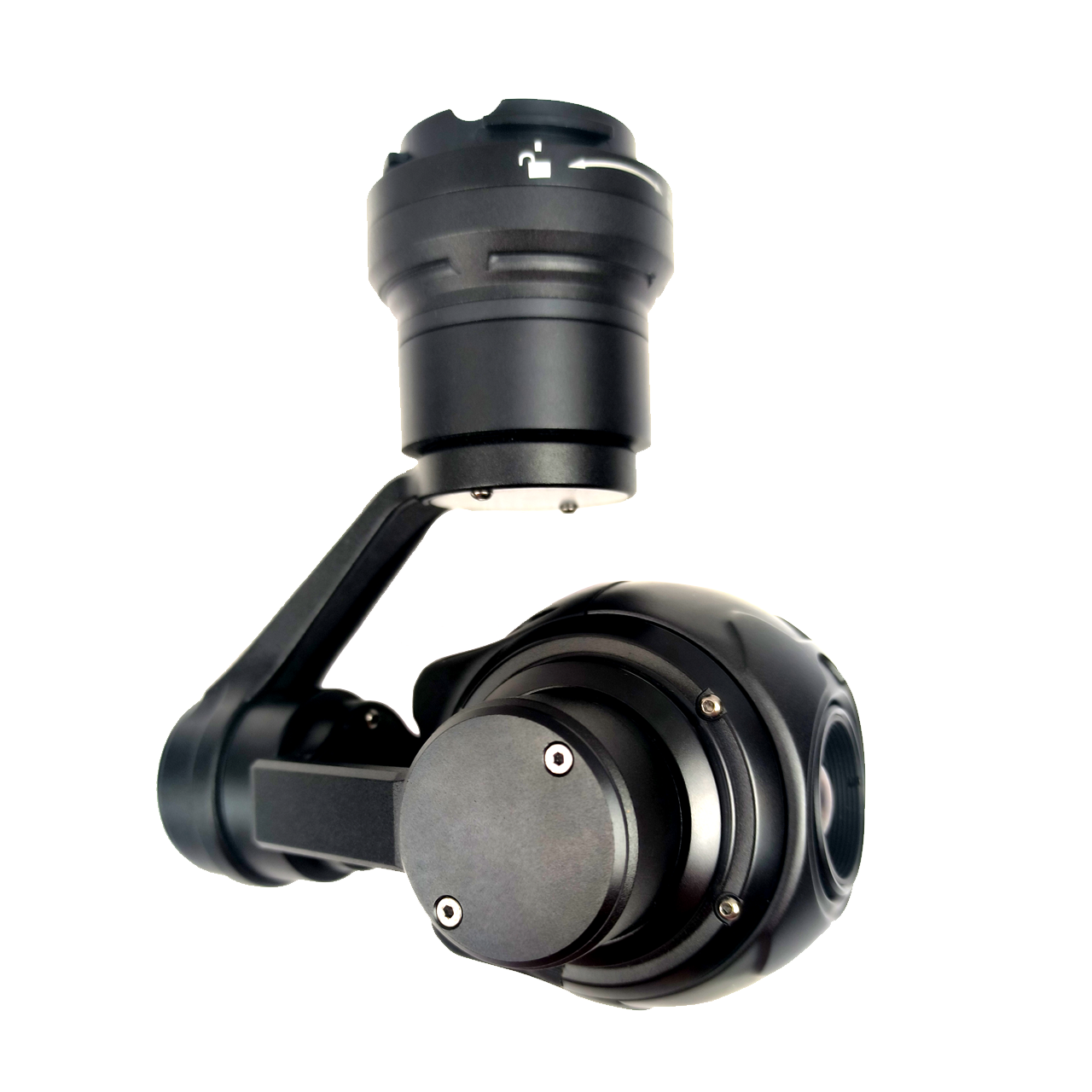 KIP640G19 is a single thermal imaging IP output gimbal camera, which adopts a 19mm focal length, 640×512 pixels resolution infrared thermal camera with 3-axis stabilization. It supports multi pseudo-color switching, area and point temperature measurement, Ethernet (standard RTSP stream) video output, local TF card storage. Our ground control software allows you to control the PTZ and the thermal imaging camera at the same time. You would also be able to control the gimbal camera and read parameters through UART or UDP. We also provide multiple serial control protocols.