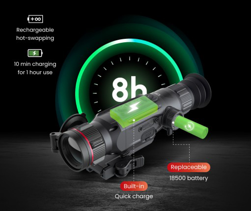 The NOVA Series provides 8 hours of continuous operation with a replaceable standard 18500 battery. It also supports 20W quick charging and hot swapping for uninterrupted use in the field.