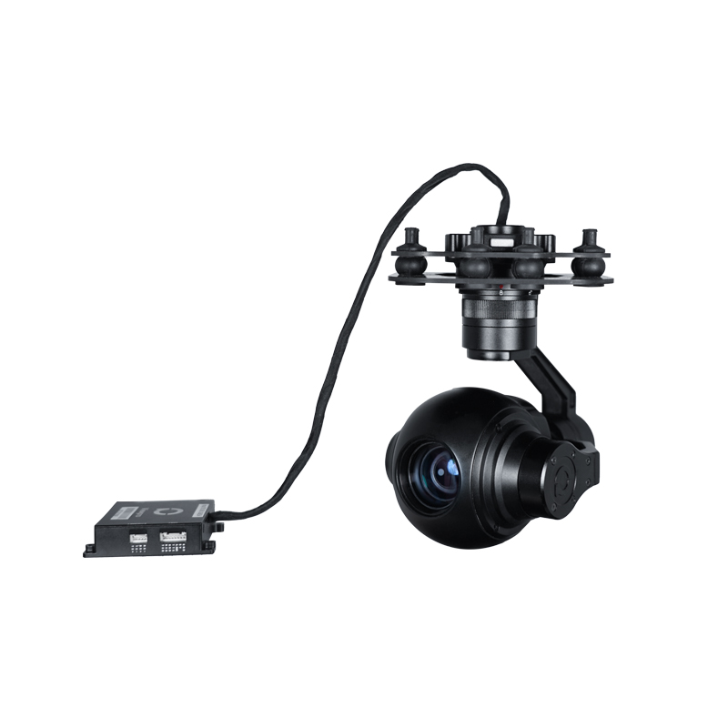 Q10E gimbal and camera features an 10x optical zoom lens. It powered by 1/3 SENSOR CMOS module, supports approx.2.48 million effective pixels, with Color 0.05lux@F 1.6 ultra-low illumination, can still clearly display image features in the poor light environment, and has a wide dynamic range of 105dB. In the presence of backlight or strong light, the view of the over bright and over dark regions can sill be captured at the same time. Q10E has 2.48 Mega effective pixels, supports 10x optical qutofocus, and HD 1080P video recording. Design for UAV aerial photography, according to aerial characteristics, using fast focus algorithm, focus time <1s.