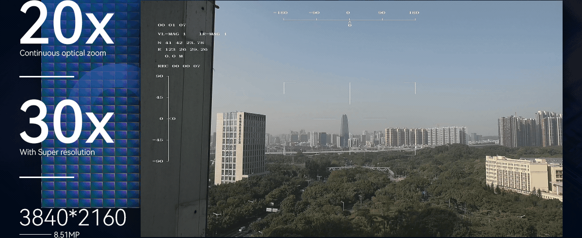 Display the gimbal’s yaw and pitch angle, magnification, card recording duration, aircraft GPS and altitude, date and time |