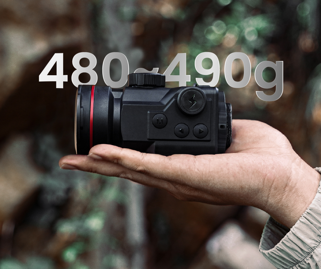 Weighing only 480~490g, the palm-sized device features a compact housing with smaller dimensions. Its well-balanced design ensures even weight distribution when mounted on a daylight scope, making the hunting gear easier to handle and more comfortable to use.