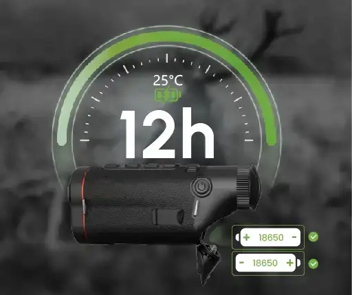 During observation, exploration and stalking in the field, the TD Gen3 Series offers an impressive 12-hour runtime. The replaceable 18650 battery supports blind installation in the dark, with no need to distinguish between the positive and negative terminals.