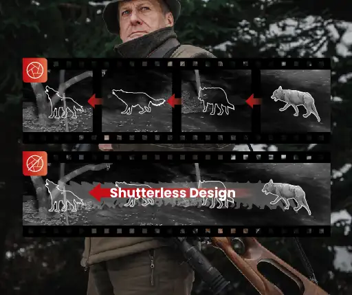 The innovative shutterless 3.0 technology eliminates the clicking sound and image freezing, ensuring uninterrupted real-time footage during actual hunts, in case any shots are lost or missed during calibration.