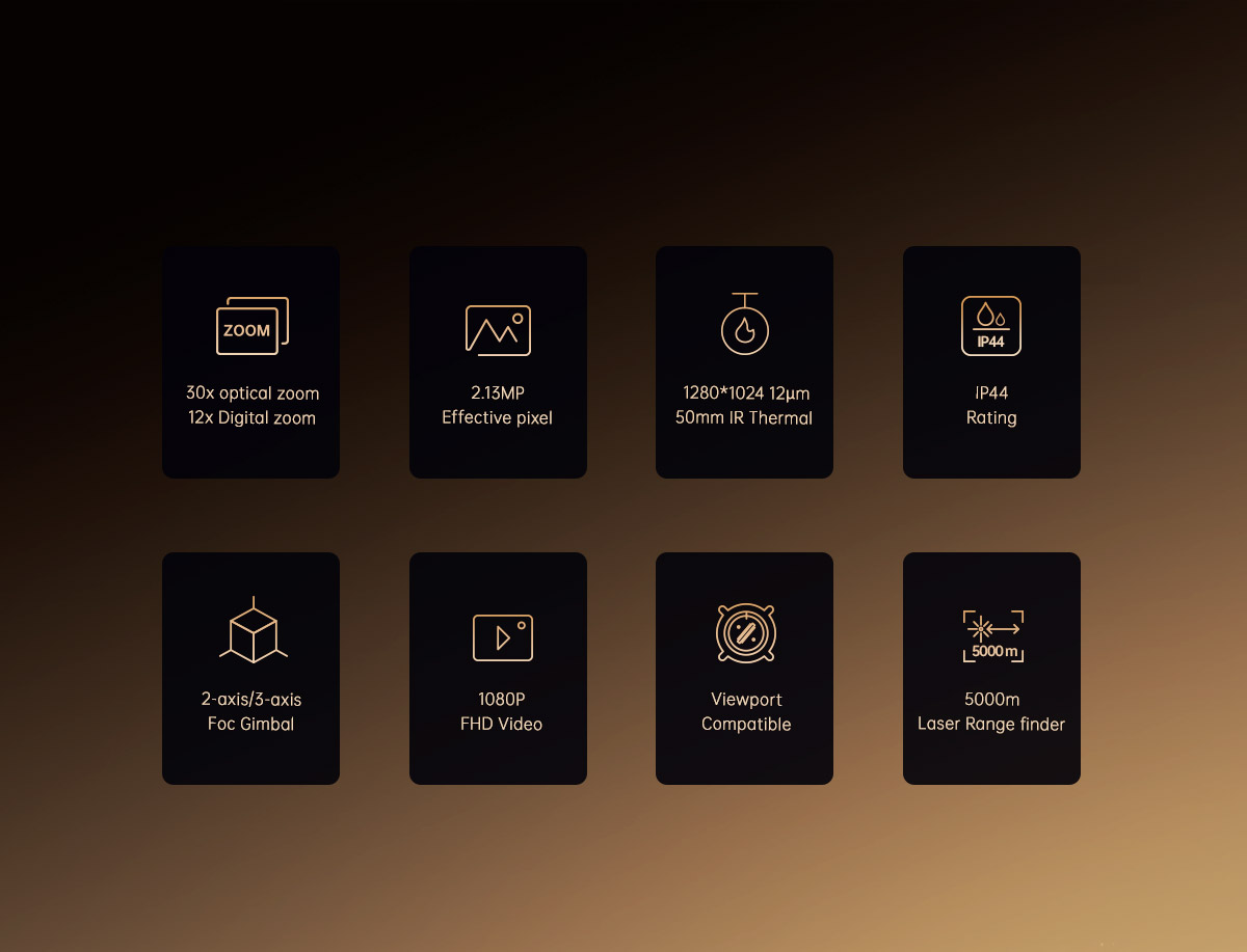 MU30TIRM-HD 1280 lR thermal 30x Optical Zoom Starlight Night Vision 5000m LRF Gimbal Camera for VTOL Fixed Wing