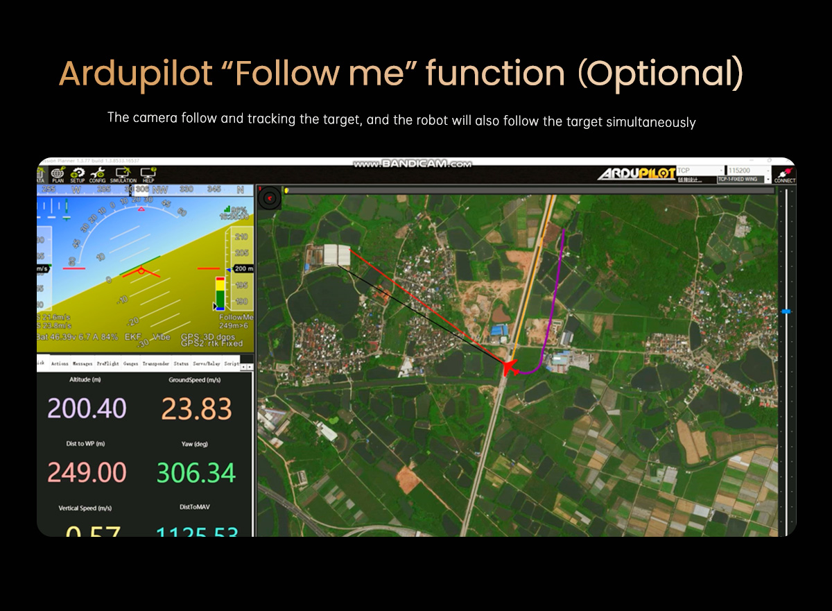 | ArduPilot / PX4 | Support(Mavlink protocol ) Optional: Support Ardupilot Follow me feature |