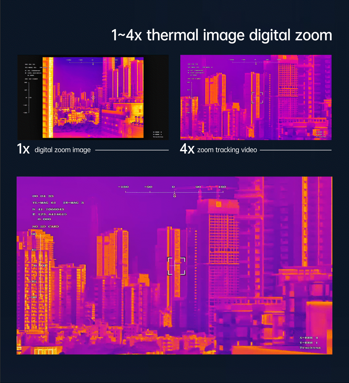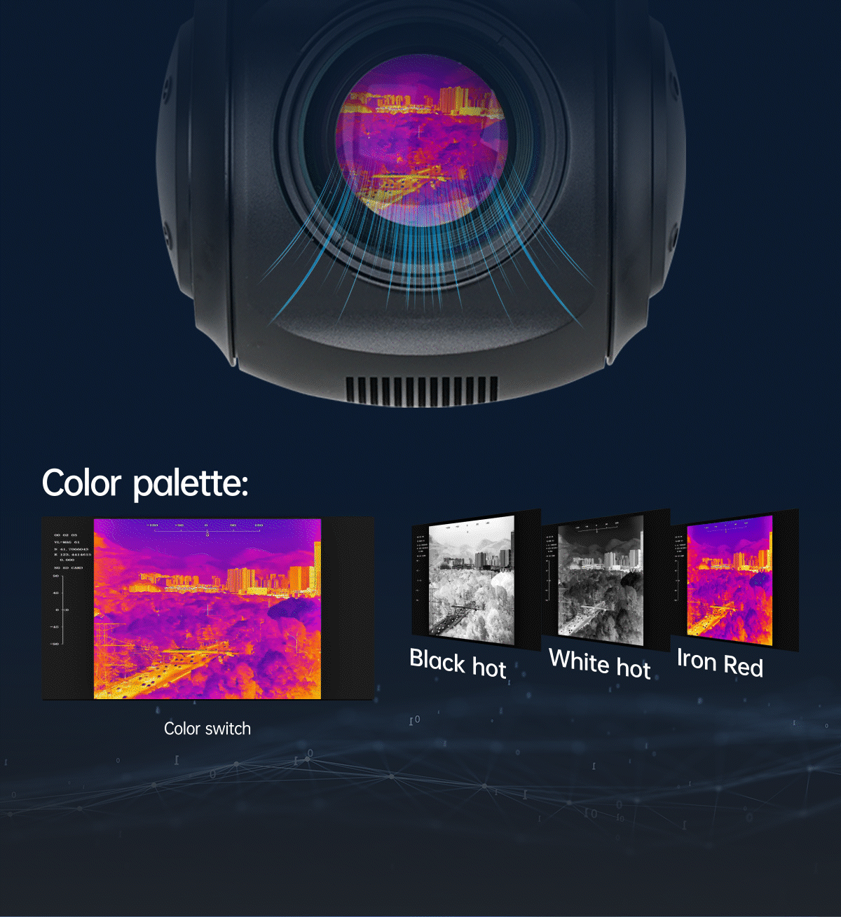 Temperature bar (psudo color display) max temp, min temp, FOV center temp (Optional) |