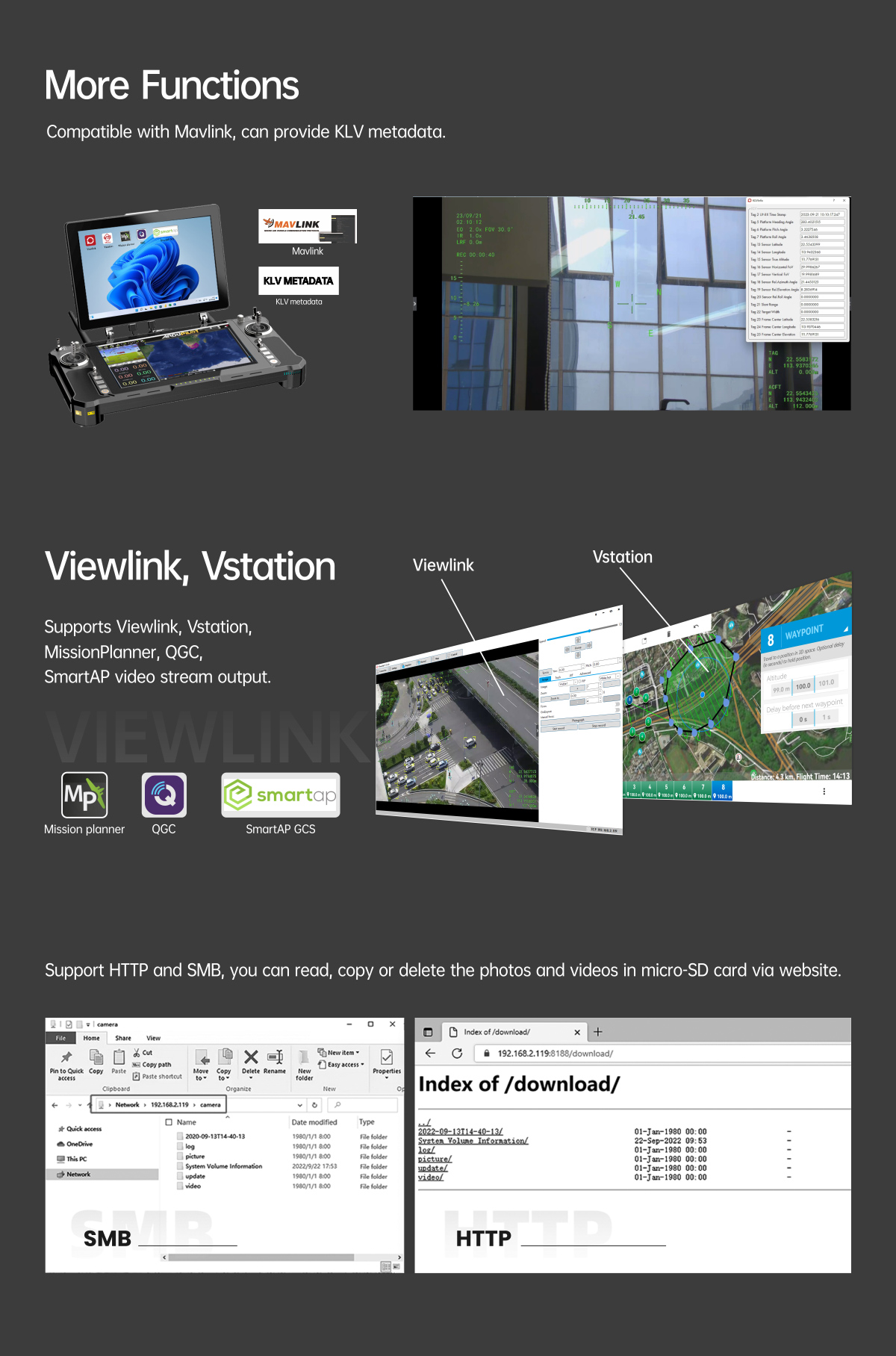 micro HDMI(1080P 60fps) / IP (RTSP/UDP 720p/1080p 25fps/30fps) / SDI (1080P 30fps) |